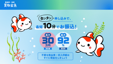 先払い買取方法と業者評判 買取金魚の先払い買取で即日現金化する方法と業者の評判 買取金魚は商品券・収入印紙など、幅広い商品の買取を専門とする買取サービスです。 ウエブから24時間いつでも簡単にできる買取申し込みで、買取金額の査定依頼ができます。 買取金魚で買取契約が成立すると最短即日で商品の発送前に買取金... 2025.09.02 先払い買取方法と業者評判