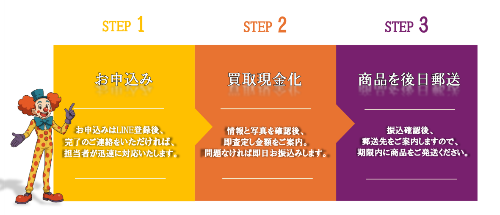 買取パレード即日現金化をするには先払い買取後日郵送買取を利用します。