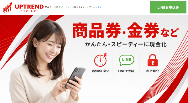 アップトレンドはデパート商品券・金券・ギフト券などを対象としたオンライン買取サービスです。