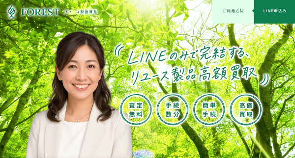 フォレストは「即日現金化が可能」「郵送と先払いの2種類の買取方法」「オンライン受付」「御三家系列」といった特徴を持ち、利用者の状況に合わせて使いやすい仕組みを提供している買取サービスです。