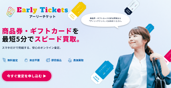 アーリーチケットは商品券・ギフト券などを対象としたオンライン買取サービスです。